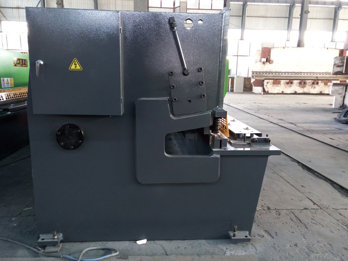 全鋼焊接結(jié)構(gòu),綜合處理(振動(dòng)時(shí)效、熱處理)消除內(nèi)應(yīng)力,有很好的剛性與穩(wěn)定性; 采用先進(jìn)的集成式液壓系統(tǒng),可靠性好; 消除導(dǎo)軌間隙,提高剪切質(zhì)量;機(jī)動(dòng)后檔料,手動(dòng)微調(diào),數(shù)字顯示; 刀片間隙有手輪調(diào)整,迅速、準(zhǔn)確、方便。 矩形刀片,四個(gè)刃口均可使用,使用壽命長。剪切角可調(diào),減少板料扭曲變形; 上刀架采用內(nèi)傾結(jié)構(gòu),便于落料,并能提高工作的精度; 具有分段剪切功能;具有燈光照明裝置功能; 后托料裝置(可另選擇配置);